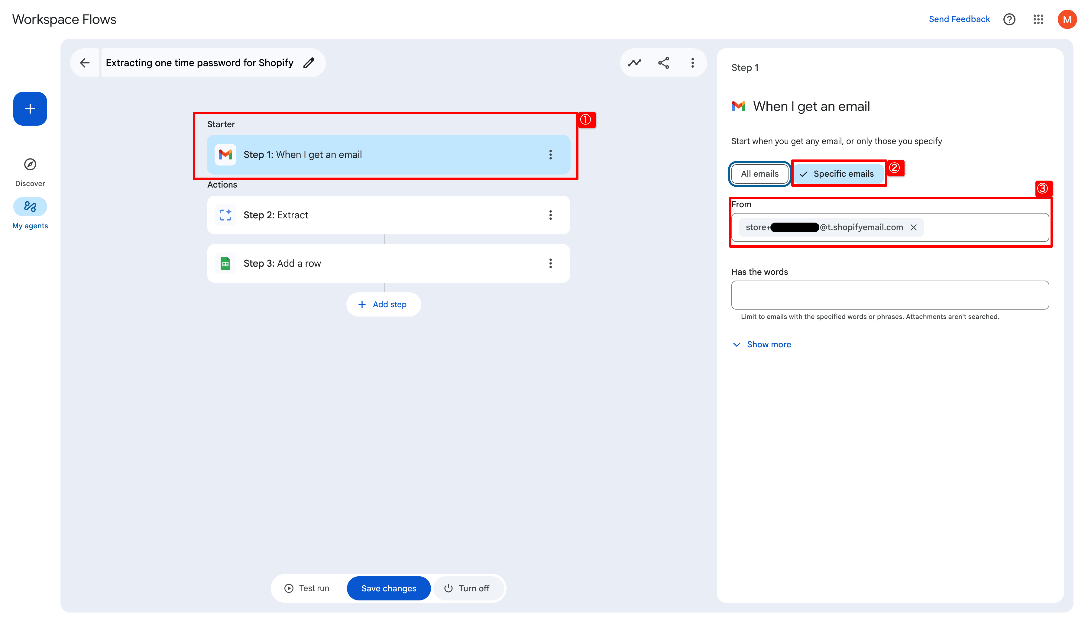 ① StarterにWhen I get an emailを選択